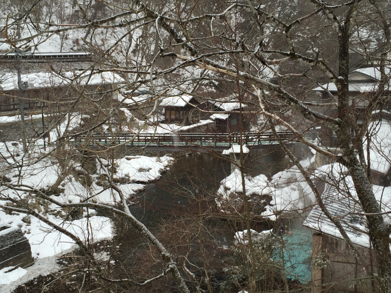 先ずは、湯治屋のレトロな「薬師の湯」で体を温める。その後、橋を渡って対岸の菊水館の「南部の湯」。木造の風呂だ。最後に、湯治屋の露天風呂「大沢の湯」。