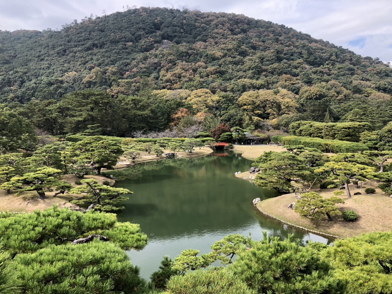 小高くなった飛来峰からは、「栗林公園」の代表的な風景として写真でよくみる眺めが堪能できる。
