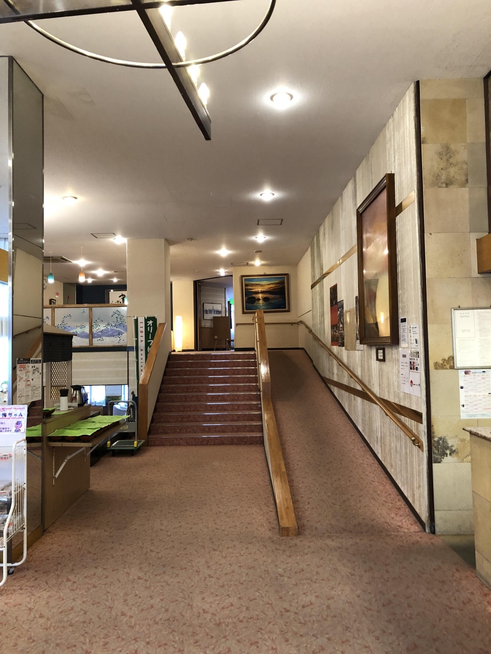 8階建てで、各フロアに数室のみのこじんまりとしたホテルだが、施設は展望大浴場の他、7階フロアに展望露天風呂があり、下記はプールも開設されるというなかなかの充実ぶり。