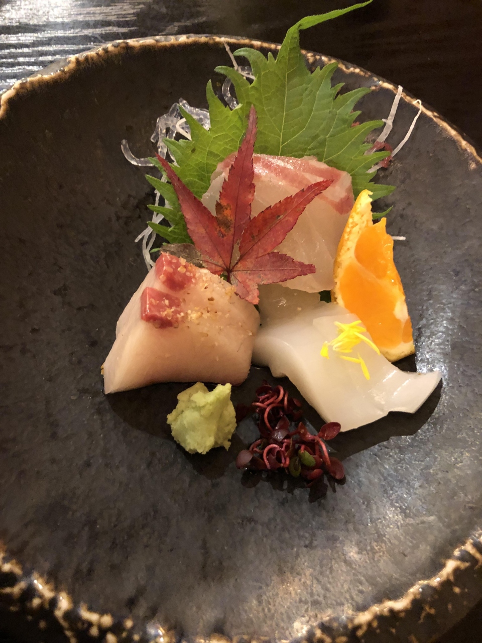 富山駅前から歩いて5分ほど、飲食店の並ぶ路地にある料理店。食べログの口コミでは予約必須の人気店とあり、ダメ元で入口の扉を開けると、幸いにもカウンター1席空きがあり入店できた。