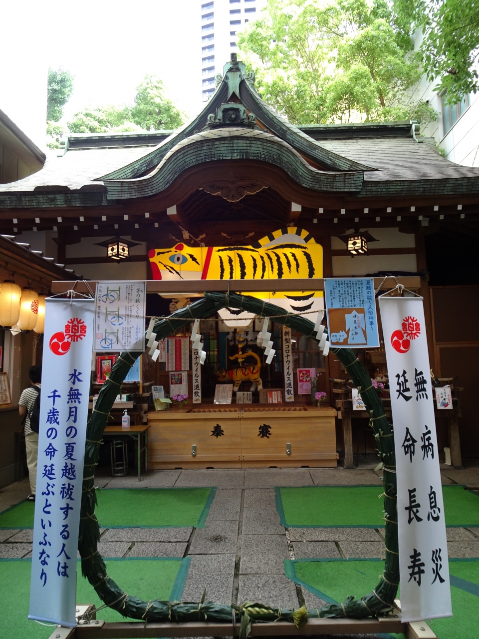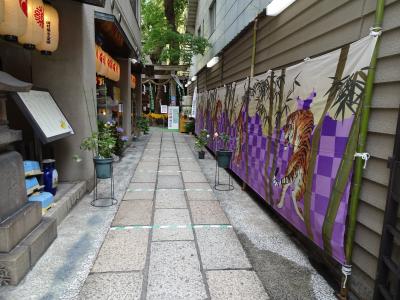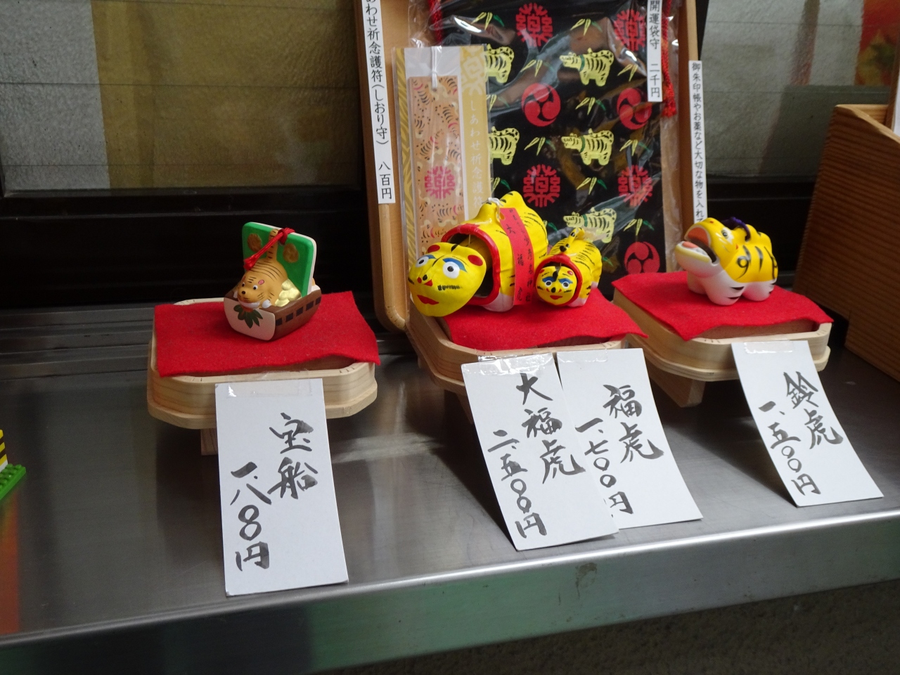 毎年11月に行われる、神農祭で授与される、五葉笹に吊るされた「張子の虎」が有名です。何故トラなのか? 調べてみたら、安政5年(1822年)、大坂でコレラが流行したが、道修町の薬種仲間が疫病除薬として「虎頭殺鬼雄黄圓」という丸薬を調合し、少彦名神社の神前で祈祷して、罹患者などに施した際、「張子の虎」を配布したそうです。その丸薬の効能が高かったため、「張子の虎」の御守がよく知られるようになったようで、境内にはトラ関係の物も多く、また、製薬会社などの薬も多数飾られていました。ここでしか味わえない独特の雰囲気がありました。