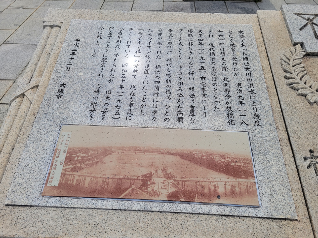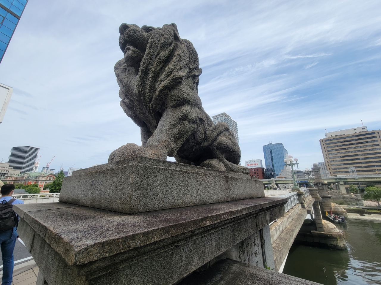 この橋を目当てに行ったわけではないのですが、橋の出入り口の左右に、立派なライオンの石像が置かれていて、名のある橋だと思いました。大阪三大橋のひとつだそうです。幹線道路の一部になっていますが、歩いて渡ってこそ、その良さを感じる橋だと思いました。