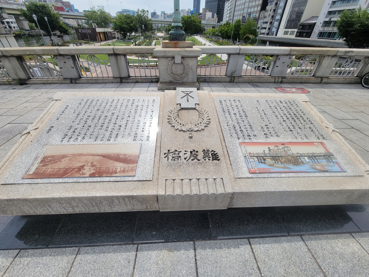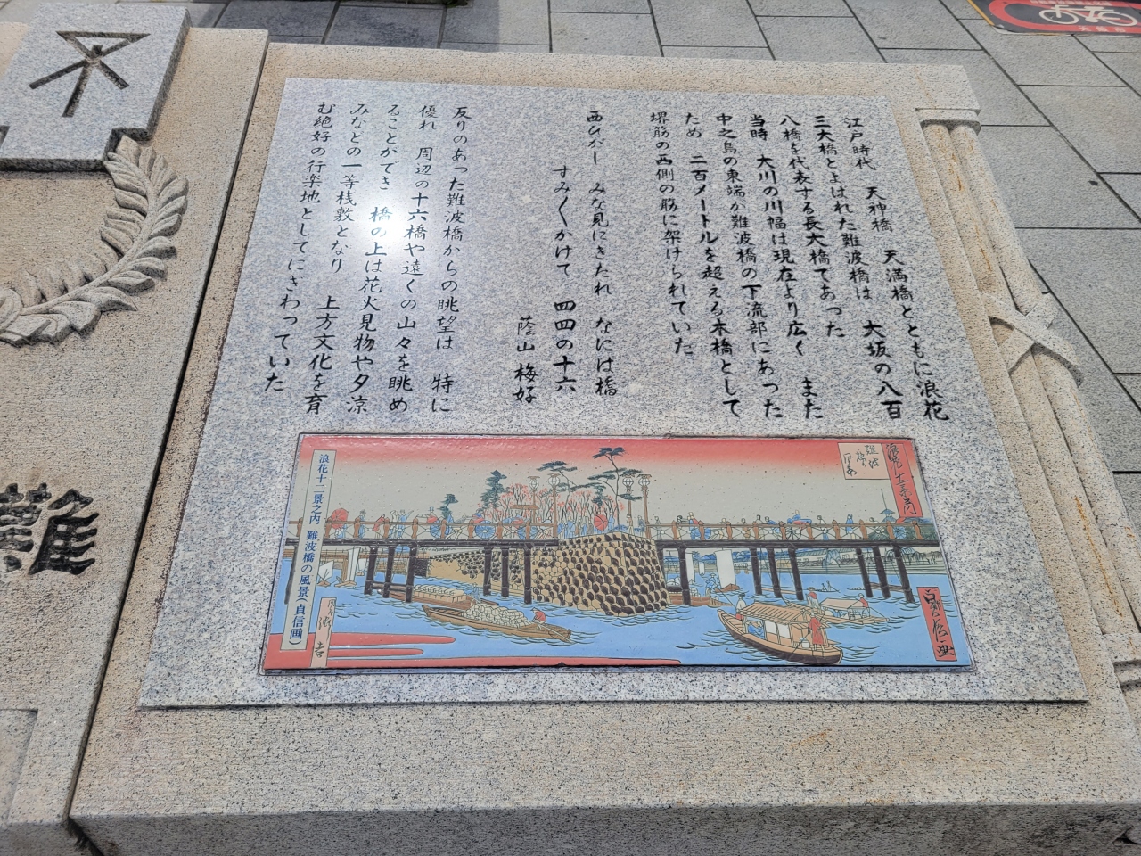 北浜方面から大阪天満宮方面に移動中、渡った難波橋の途中から、下に降りる感じで訪れました。