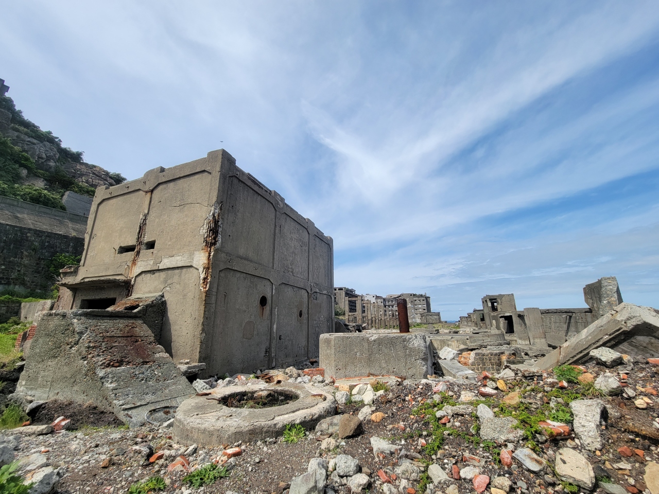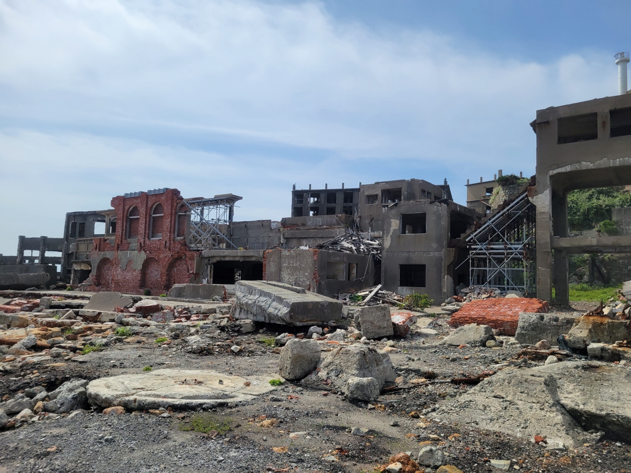端島の炭鉱は、当時の日本の発展に役立った場所です。1810年頃に石炭が発見され佐賀藩が小規模に採炭していたそうです。1890年に経営が三菱になってから、本格的な海底炭鉱としての操業が開始されています。掘り進んだ結果、地下1000メートルを超えるまで掘り進んだようです。1974年1月に閉山し、4月20日以降無人島になっています。埋め立て・造成を繰り返し大きくなっていった端島。それだけここの炭鉱が、重要で需要も多かったんだと思わせます。当時活躍していた施設は、殆どが壊れて面影を残すのみとなっていました。