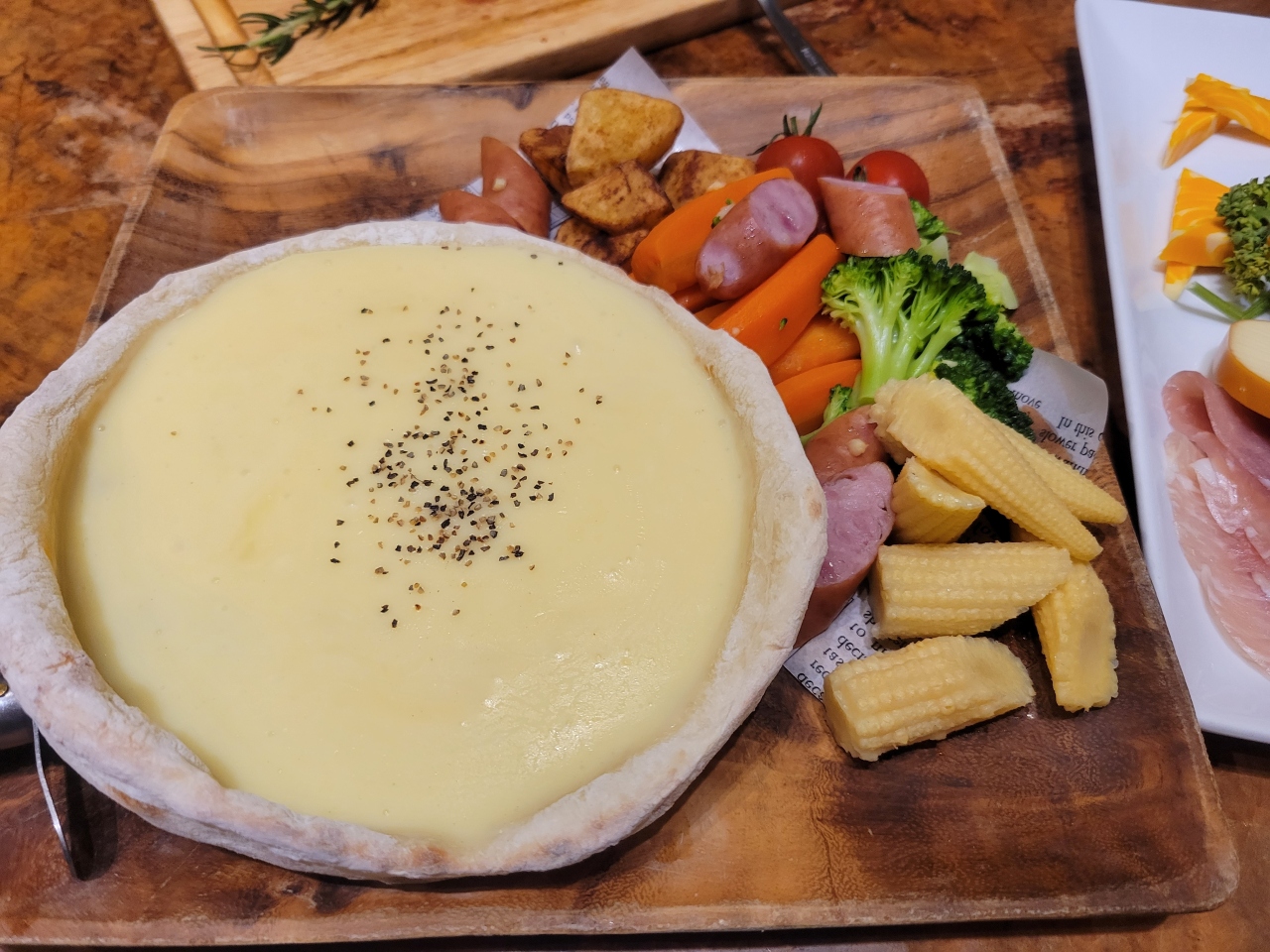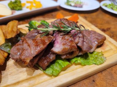 肉料理が中心でしたが、どれも美味しい! と言うほどのものは無く、ステーキは見栄えは良いのですが、かなり固く、筋も残っている感じでした。名物のピザのようなものは、チーズフォンデュ紛いの食べ方を勧められましたが、これも私にとっては、普通のピザの方が何倍も良かったと感じました。