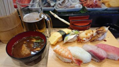 生ビールと、寿司を3種ほど注文して、さっさと出ました。