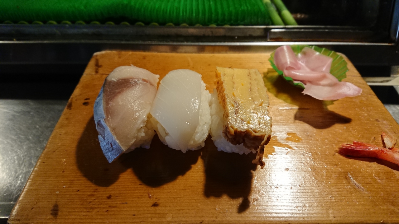 握りも、軍艦はありませんでしたが、エビ、マグロ、イカ、サバなどと、巻物2種。