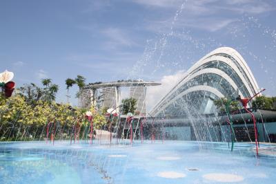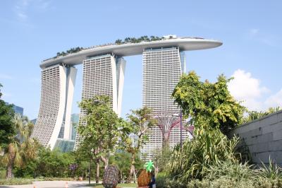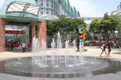 噴水ショーを見るために、マリーナ・ベイ・サンズホテル前から見ました。