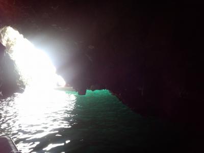 洞窟は、潮の満ち引きの関係で、頭がぶつかりそうになることもあります。