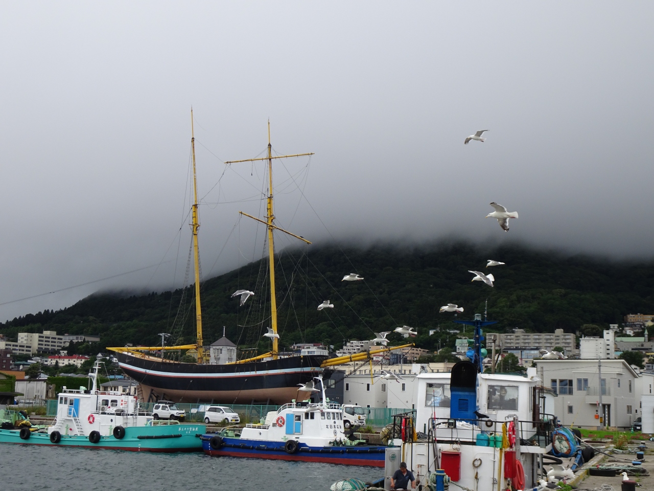 函館の様々な観光名所が集まる、旧函館区公会堂近く。坂道は下らず、南の方に進んだらありました。