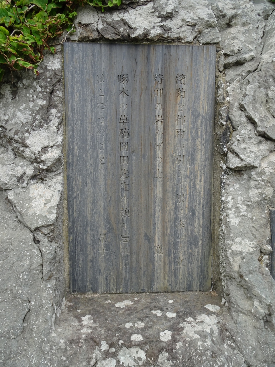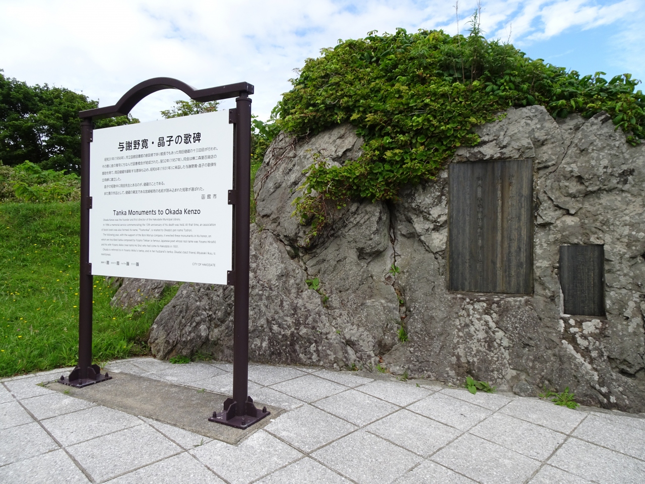 岩に2つのレリーフが埋め込まれており、与謝野寛・晶子の歌がそれぞれに刻まれています。