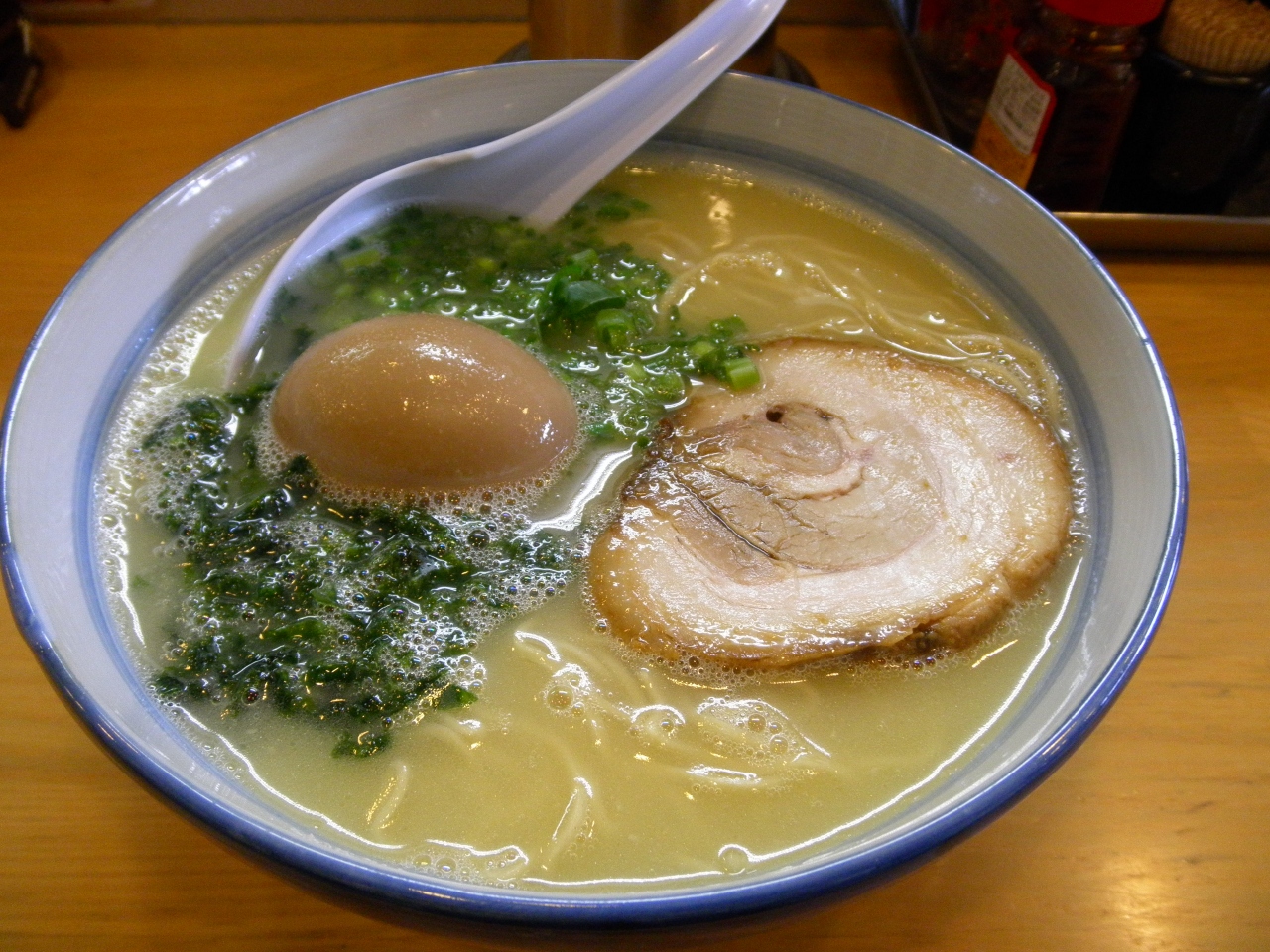 メインのラーメンは、背脂多めの麺堅めを注文。