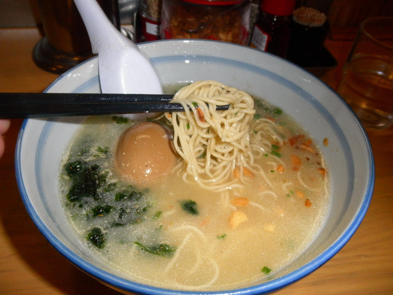 麺は博多風の細麺で、堅さも注文できますし、替え玉も可能です。