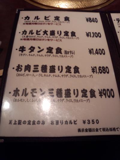 隣にも焼肉店があり、どちらに行くか迷ってしまいましたが、月曜日は牛タンがサービスで付くという文句にひかれ、こちらを選択しました。