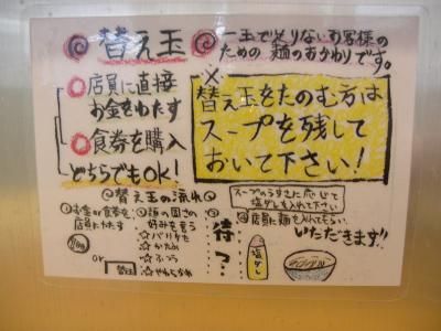 しかし、女房は塩ラーメン。私はつけ麺を頼んだので、替え玉は利用できませんでした。