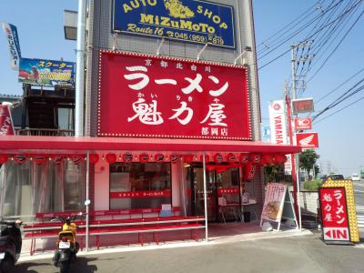 中原街道沿い、ズーラシアの近くにあります。保土ヶ谷バイパスを降りて、ズーラシア方面に向かうと、上り坂を登り切った辺りに有り、度派手な赤い看板が目印です。