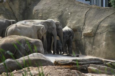 ここの見物は何と言っても、ゾウの展示場だと思います。数年前に出来た施設で、ゾウが小さく見えるほどの大きさです。そして、沢山います。