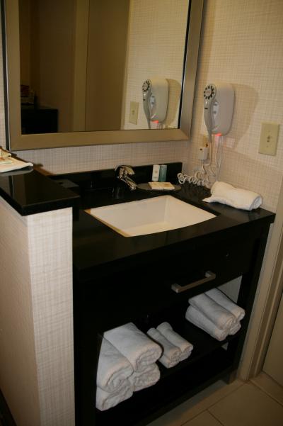 ホテルの近くにはステーキハウスが1件あるだげ、食べ物やは皆無。また、歩いて行かれる範囲にコンビニ等も見あたらなかったので、食事を調達するのが大変でした。