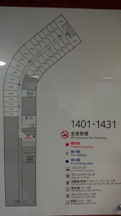 私が泊まった部屋は、駅とは反対側を向き、角部屋だったので、他のシングルルームより、若干広くてラッキーでした。逆に廊下の最後まで歩かないと辿り着かない不便さもありましたが・・・