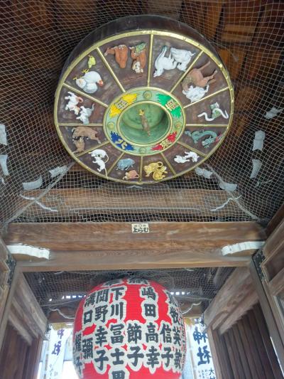 博多祇園山笠が奉納される、博多の総氏神様としては最古の歴史を有する、櫛田神社の門です。ただの門では無く、上を見上げると、干支恵方盤が吊るされていました。毎年大晦日に新しい年の恵方を示すように矢印が回転されるそうです。