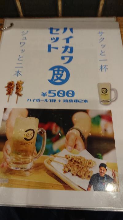 ハイボールと鶏皮串2本で500円という、激安セットがありましたので、それを注文。その流れで、他にも色々注文しちゃうので、500円では終わりませんでしたが・・・