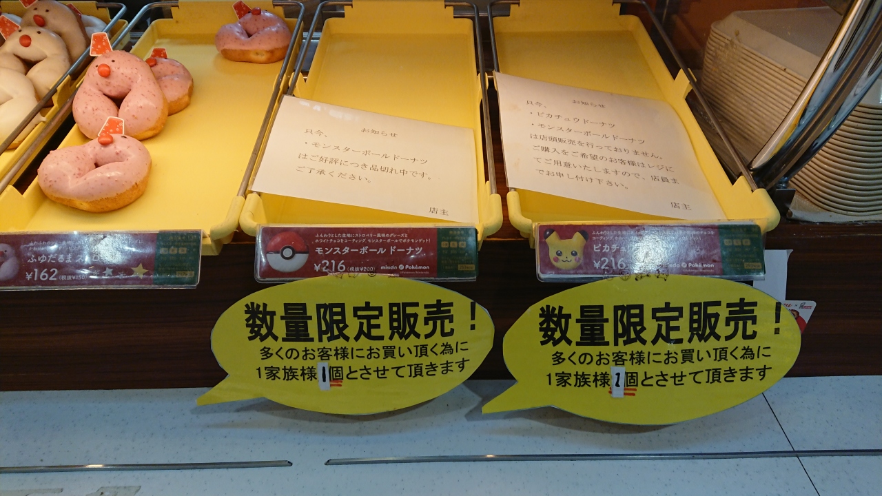 イトーヨーカ堂のフードコートの一角にあります。持ち帰りは勿論、ランチなどで、ドーナツ以外のメニューも増えてきた感じでした。訪れた時には、ポケモンとコラボしていたようで、ピカチュウのドーナツもありましたが、人気の様で1家族1個となってました。