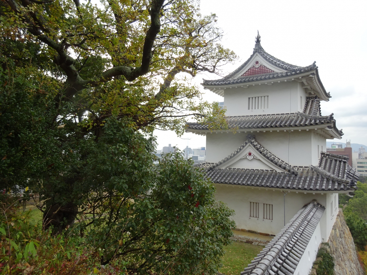 JR明石駅から徒歩数分、駅のプラットホームからも見えます。天守閣は元々無かったようで、立派な櫓が見られる平城です。江戸幕府の2代目将軍・徳川秀忠の命により、譜代大名の小笠原氏の居城として建てられたそうです。訪れた時は、間もなく築城400年になるそうで、工事中の場所も多く、全景が見られなかったのは残念でした。