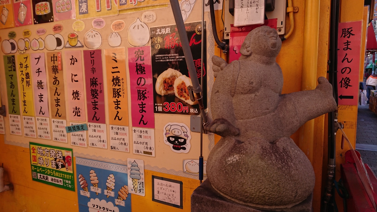 店の脇には、よく分からないけど、豚まんの像が置かれています。- 旅行時期