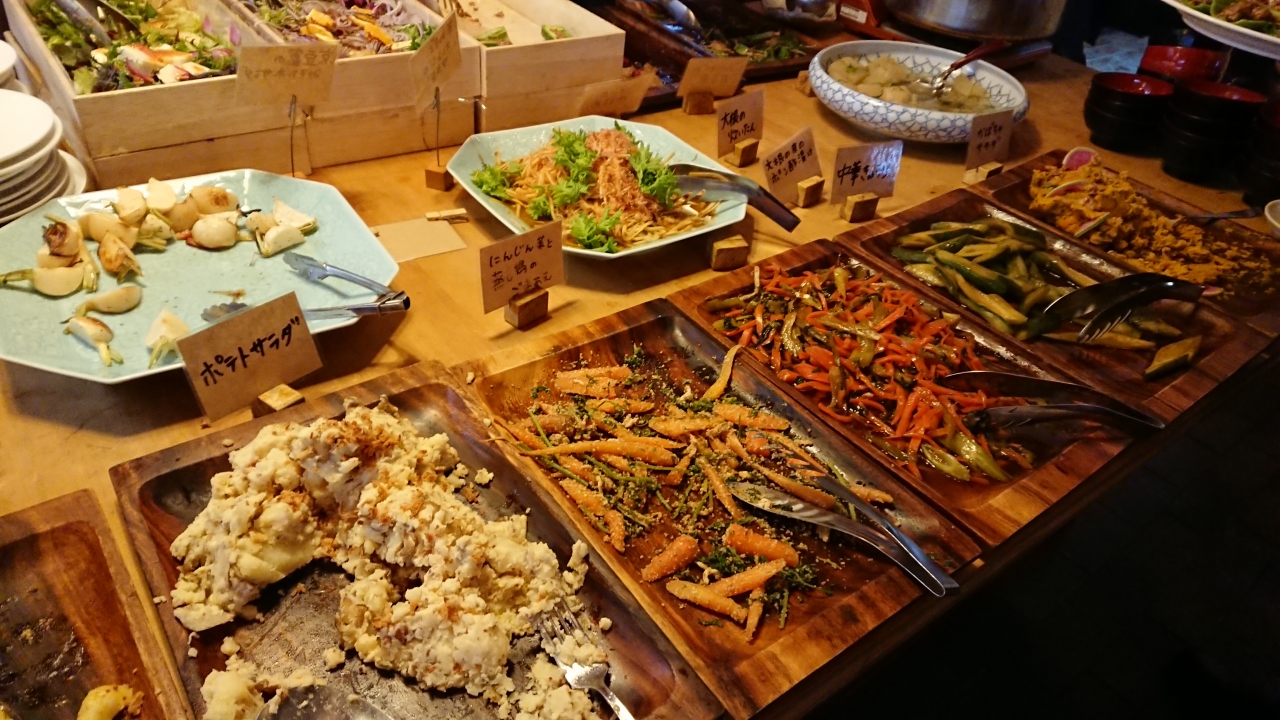 大原に観光で行った際、寄りました。ランチはバイキング形式で、京都のおばんざい料理を中心に、お腹一杯食べられます。ただ、口コミで広まっているのか? 開店前には長蛇の列ができていて、ちょっとの差で1時間以上待つことに。店内・店外に席があり、待ちたくなかったので、外で食べましたが、かなり寒かったです。料理は20種前後のおかずやサラダなのが選べ、温かい味噌汁も美味しかったです。生ピーマンの肉みそ詰めも、珍しいですが美味しかったですよ。