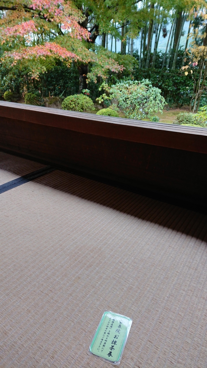 正面の門(御殿門)をくぐって入場料を払って受け付けを済まし、靴を脱いでビニール袋に入れて手で持ち、案内の順路に沿って拝観する仕組みです。開門前には、待つ人が見られるほど。豊臣秀吉が建てたとされる風格のある客殿の中では、御朱印を頂けたり、聚碧園を眺めながら、お茶も頂くことができました。紅葉の時期だったので、紅葉を見ながらお茶を頂くと言う、和の世界を体験できました!
