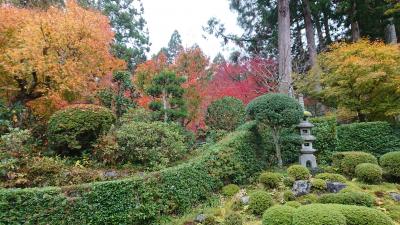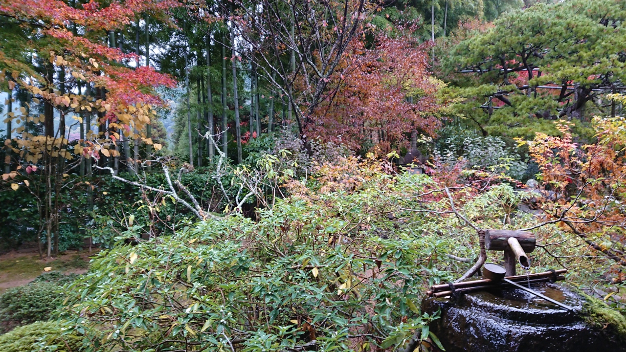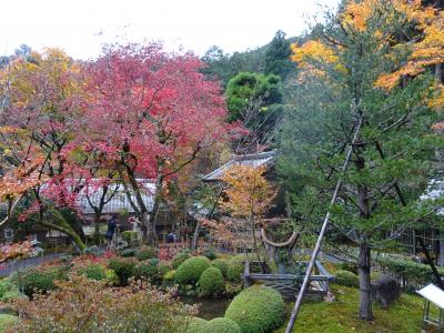 庭園には、聚碧園と有清園があります。聚碧園は池泉観賞式庭園で、東部は山畔を利用した上下二段式とし、南部は円形とひょうたん形の池泉をむすんだ池庭を形成しています。有清園は宸殿より往生極楽院を眺める池泉回遊式庭園です。池があり滝があり、灯篭があり、いかにも和の庭園の雰囲気が素晴らしかったです。紅葉の時期に行ったのですが、生憎の天気でしたが、散ったモミジ等にも美しさを感じ取れました!