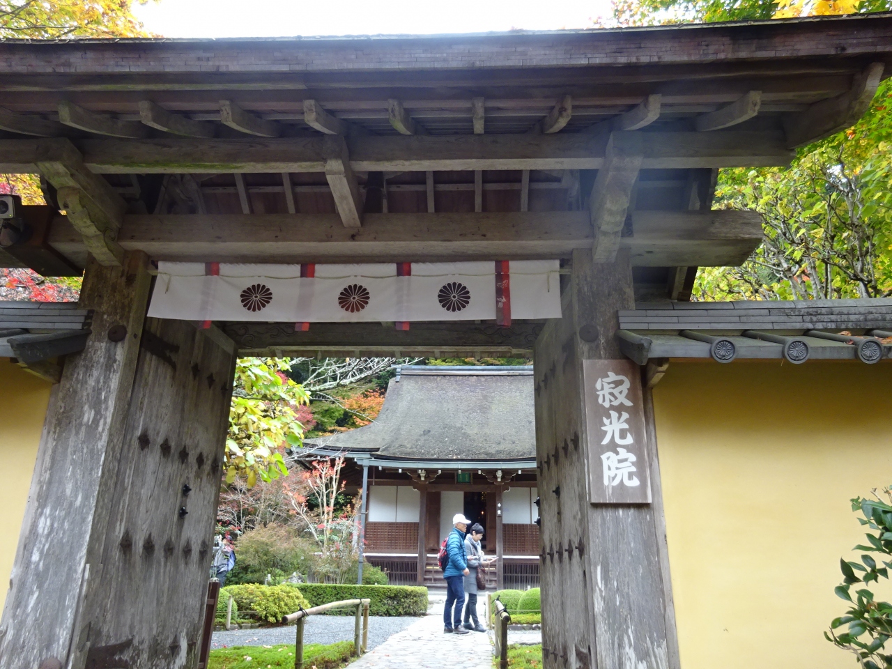 ここ三千院は、まるで城郭のような石垣がめぐらされており、重厚な味わいがありました。ですから、この門が閉まっていると、中の様子は全くうかがい知ることもできない感じでした。まるでお城のような重厚な門でした。- 旅行時期