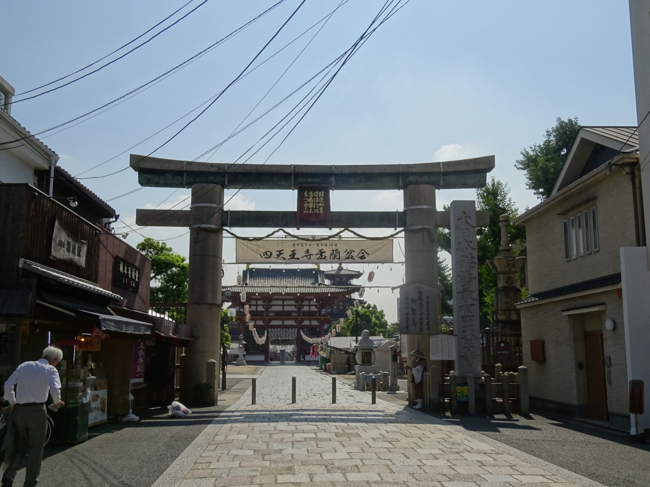 四天王寺は、聖徳太子によって建立された「日本で最初の国立の寺院」です。西門の外側にある石鳥居は、1294年に、別当となった忍性がそれまでの木造鳥居を石造に改めたものだそうです。扁額は1326年の鋳造で、「釈迦如来転法輪処当極楽土東門中心」の文字が記されています。