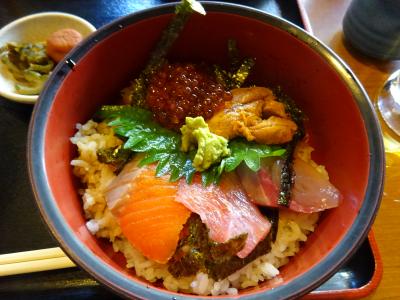 2階の窓側からは、眼下に川が流れていました。ウニのせ海鮮丼を頂きましたが、ウニはそれほどでもなかったですが、価格を考慮すれば、納得の味でした。ご飯の大盛りをしてもらいましたが、量としては少なかったです・・・- 旅行時期
