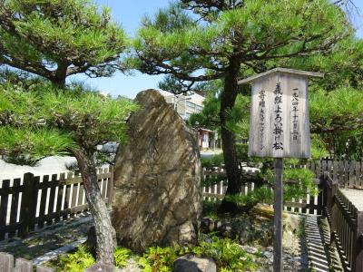 593年、聖徳太子が創建した日本最初の官制寺院ですが、そのような長い歴史を持つここに、源義経が逃避行の前夜、一宿しており、その際にこの松をみつけて自分の鎧を掛け、ひと時の休息をした、という伝説をもつ「松」なのです! 極楽門と西重門の間にありました。