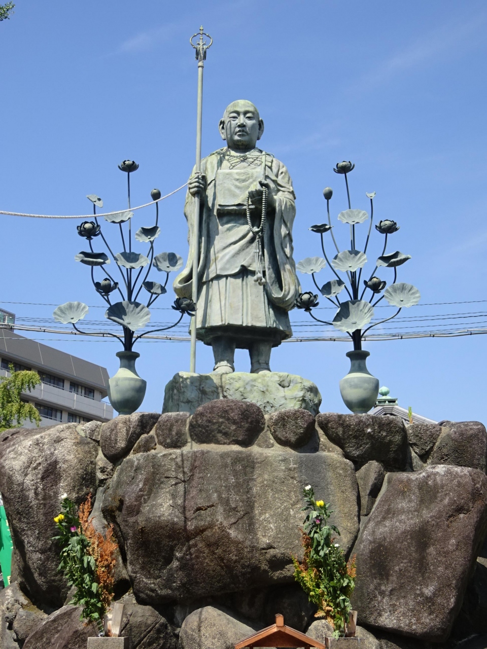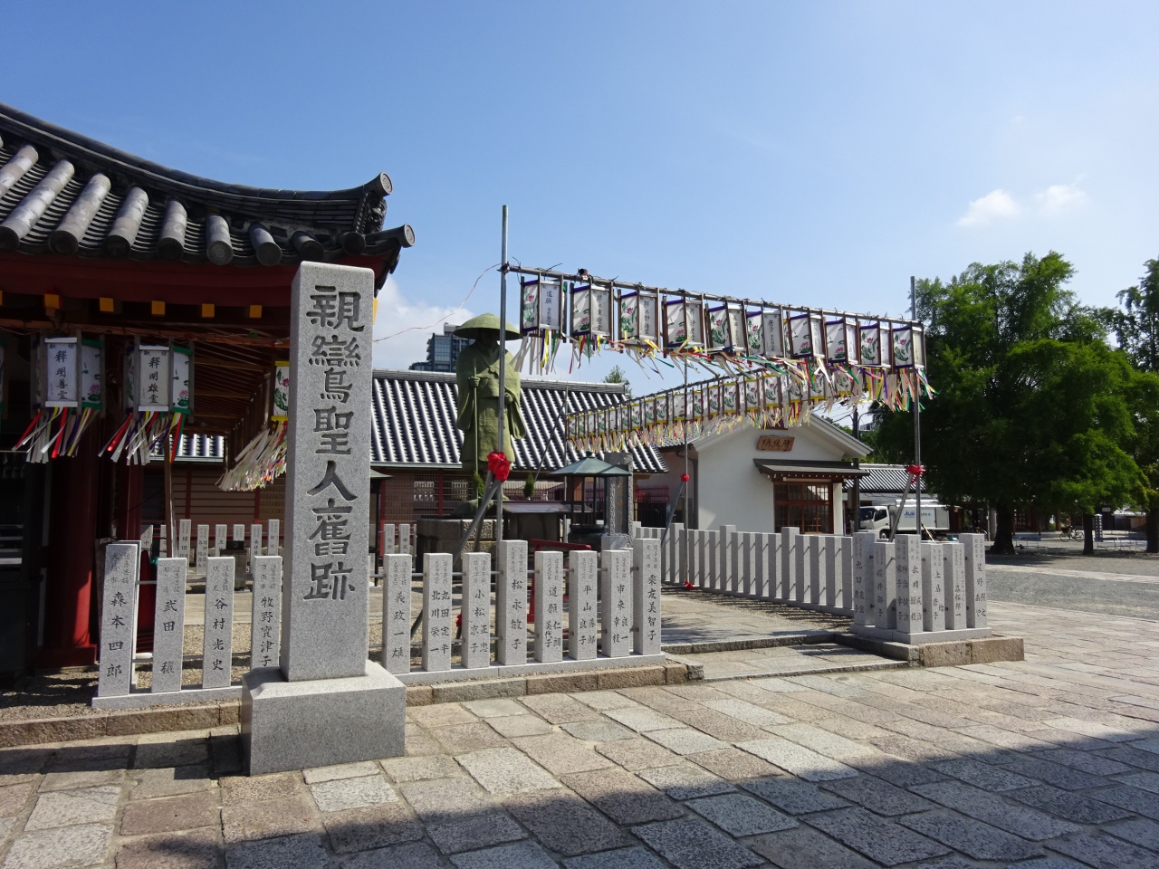 日本仏教の祖とされる「聖徳太子建立の寺」である、四天王寺の敷地内にあります。浄土真宗の宗祖とされる、親鸞聖人の像は見真堂の前にありました。社会の教科書で習ったほど、弘長二年に90歳という長寿をもって没した親鸞聖人は、言わずと知れた専修念仏の大成者ですよね!