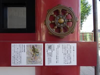 四天王寺にはたくさんの門がありますが、この西大門が一番立派だと思います。 別名の極楽門 という名前にふさわしい、豪華な木製の立派な門です。西大門から極楽浄土に通じると考えられて、特別視されているようです。その門の四ヶ所の柱にコマ状の小さな車輪が付いていて、参詣者はこの門をくぐる時に車輪をまわして通ります。