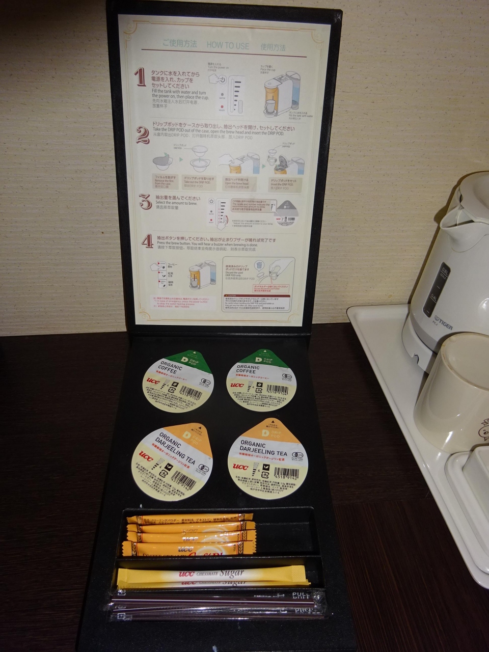京都のシンボル的存在、京都タワーの麓にあるホテル。夜行バスで早朝に到着。荷物を預けて観光に。戻ってからチェックインすると、預けた荷物は部屋に移動されていました。広めのベッド。部屋にあるコーヒーメーカーはUCCのドリップ式のものでした。何度か出入りをする度に、フロントに鍵を預けていたためか、部屋番号を言う前に、部屋の鍵を渡してくれるまでに。フロント対応は、申し分ないですね。