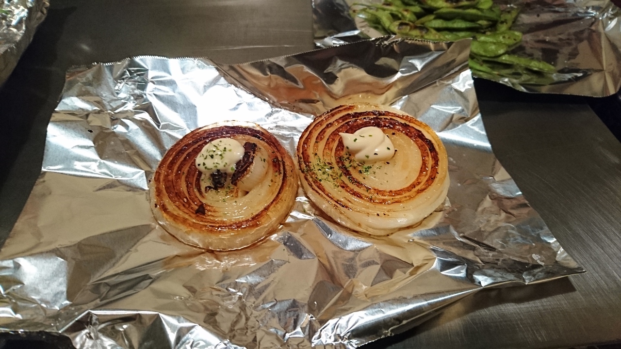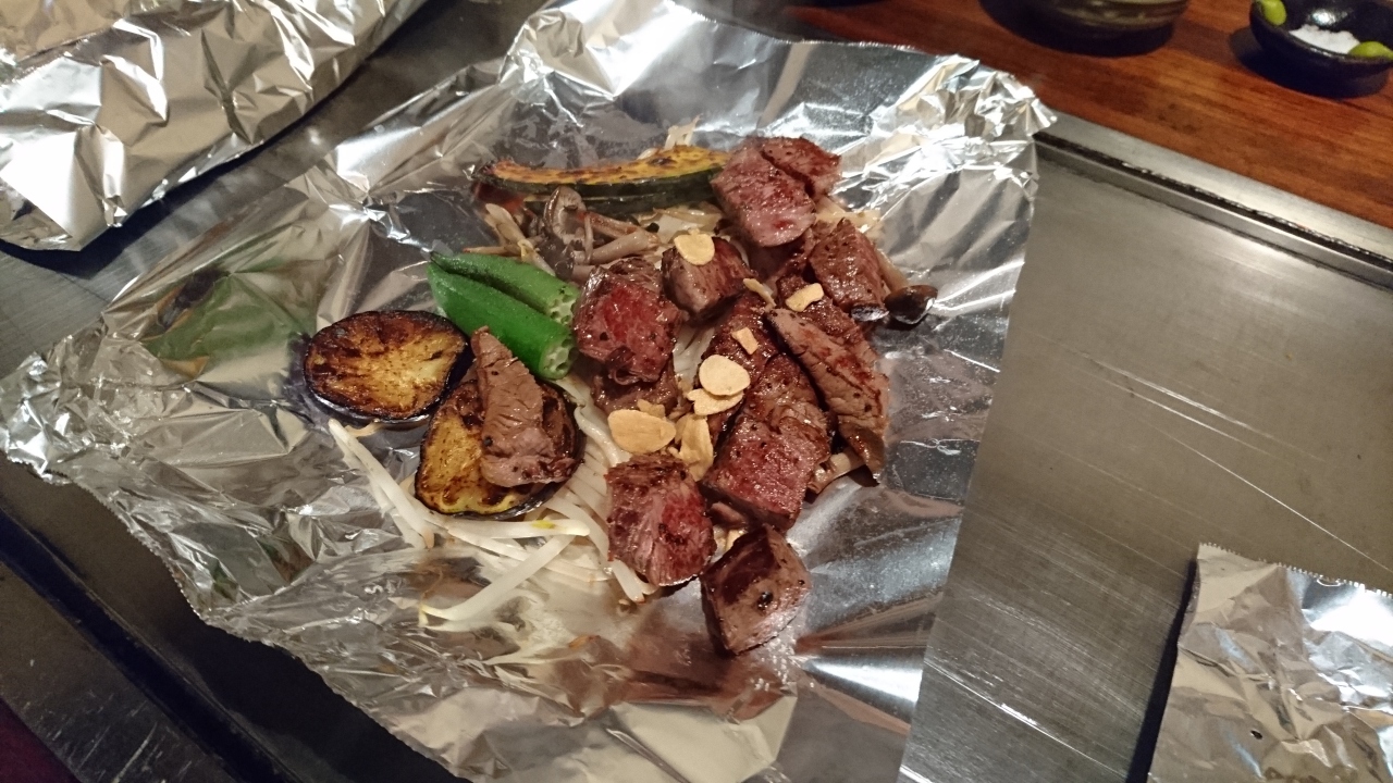 しかし、自分たちで焼くのではなく、厨房で焼かれたものがアルミホイールに乗せられ提供されます。
