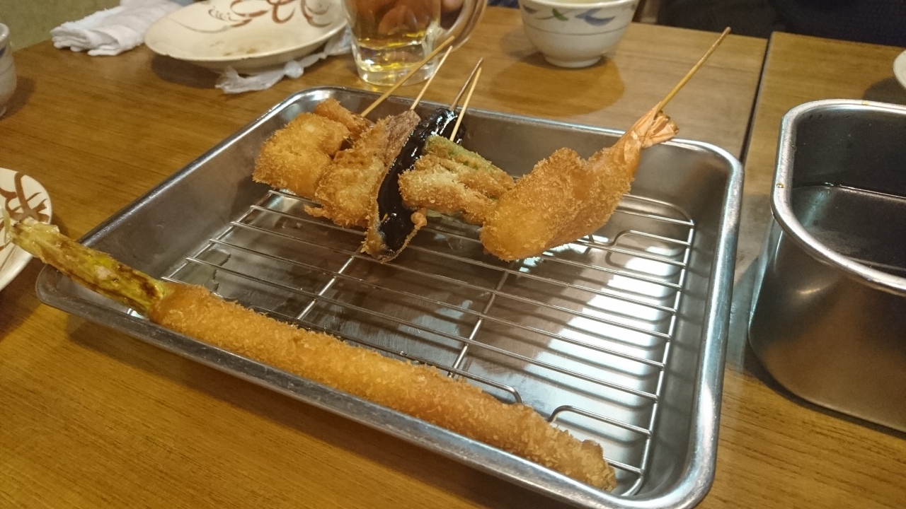 大坂の観光地、新世界には沢山の串カツ屋があります。