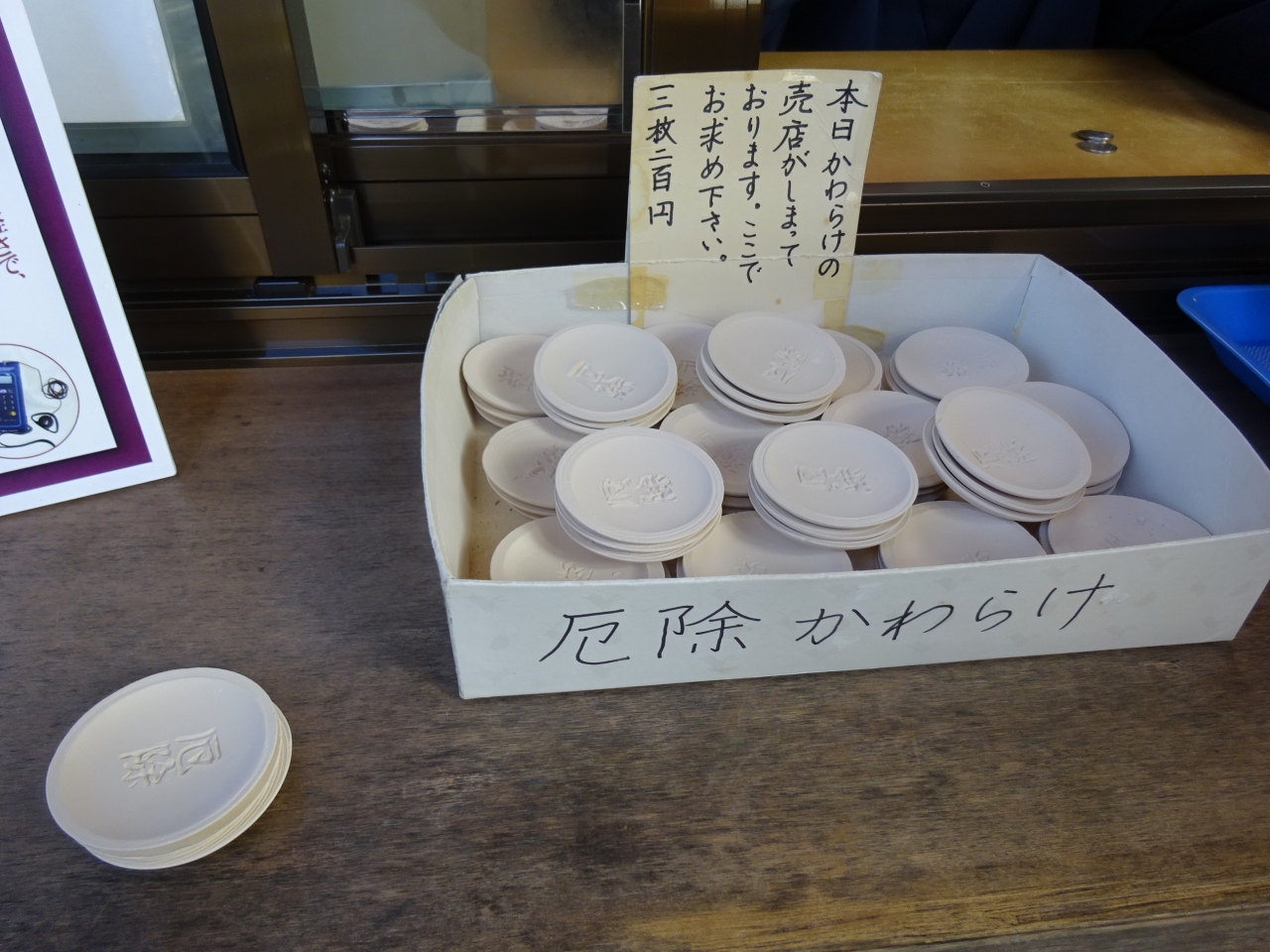 錦雲渓に向かって投げる「かわらけ投げ」も有名です。3枚200円でした。- 旅行時期