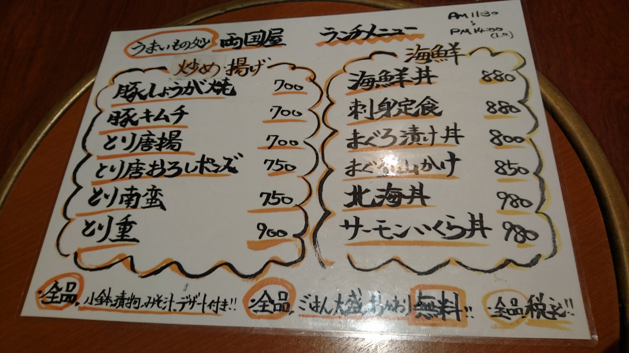 海鮮関係の丼物。焼き魚や焼肉系のランチが数種類ありました。