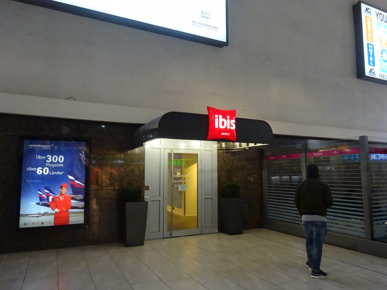 デュセルドルフ中央駅直結のホテルです。近くには別のIbisホテルもあるので、間違わないようにしましょう(私は間違えました)。旧市街地方面、栄えている方にコンコースを進むと、向かって右側に入口があります。