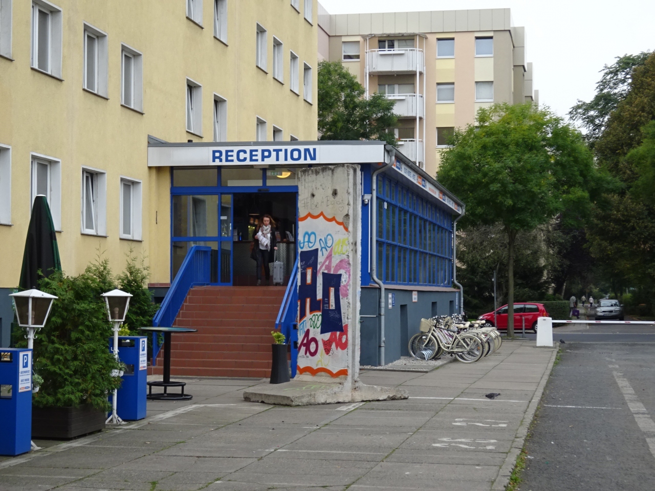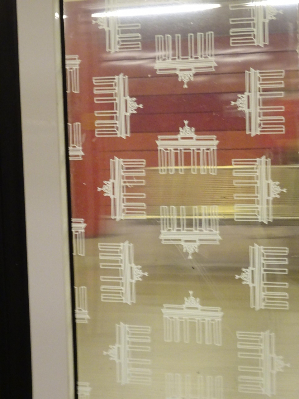 ガラスには目隠しシートが貼ってあり、ベルリンらしく、ブランデンブルク門がモデルになっています。