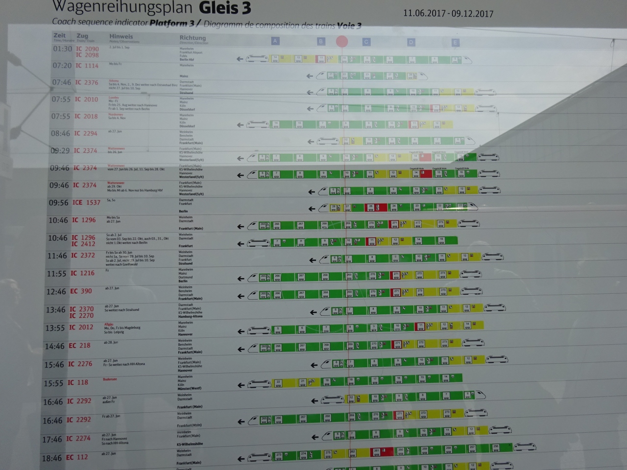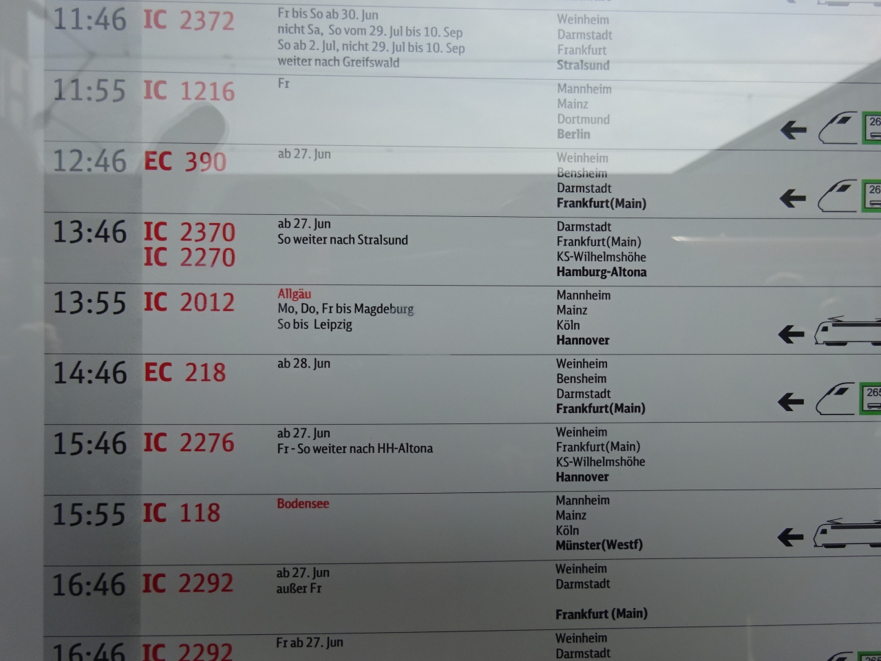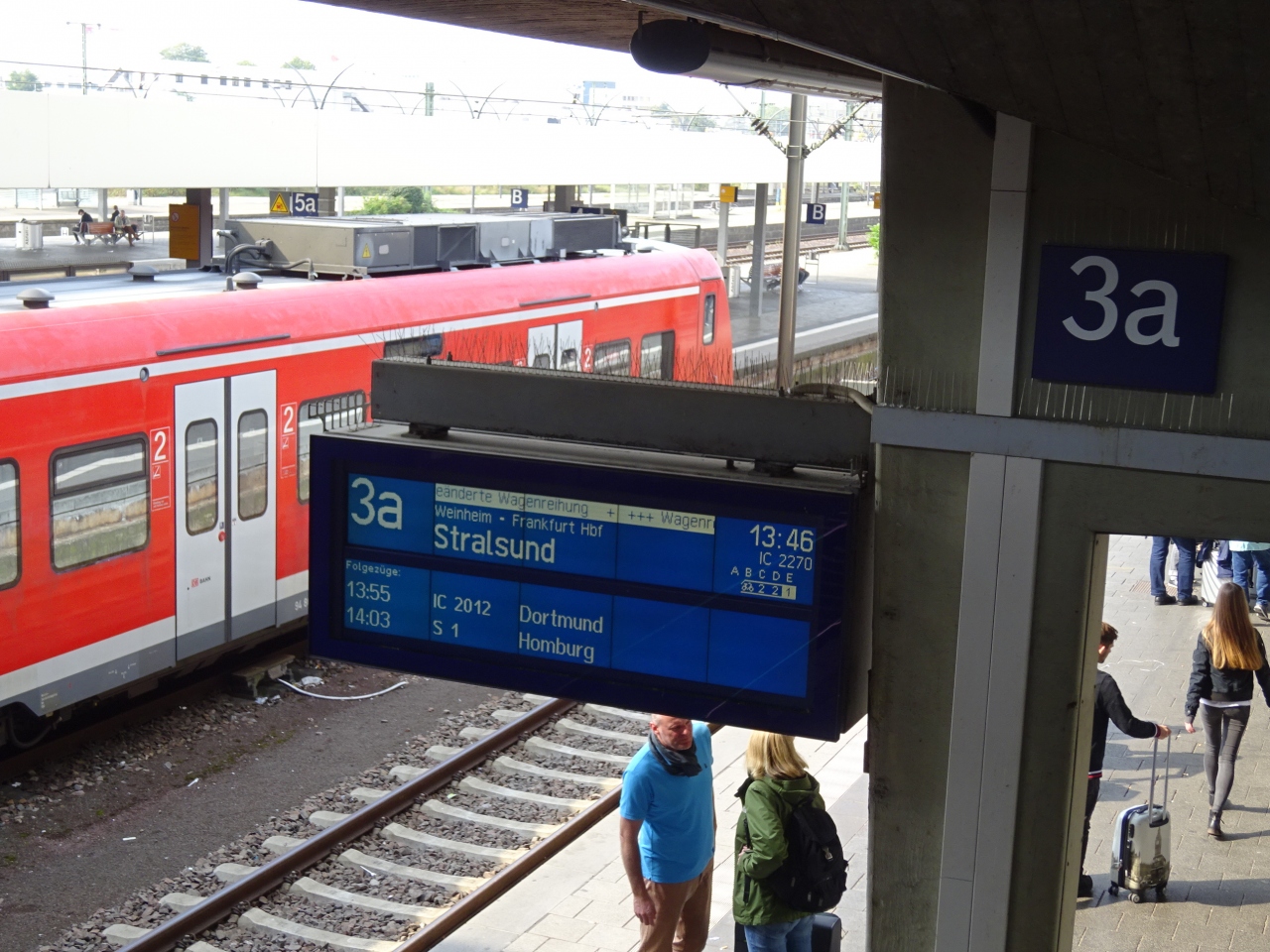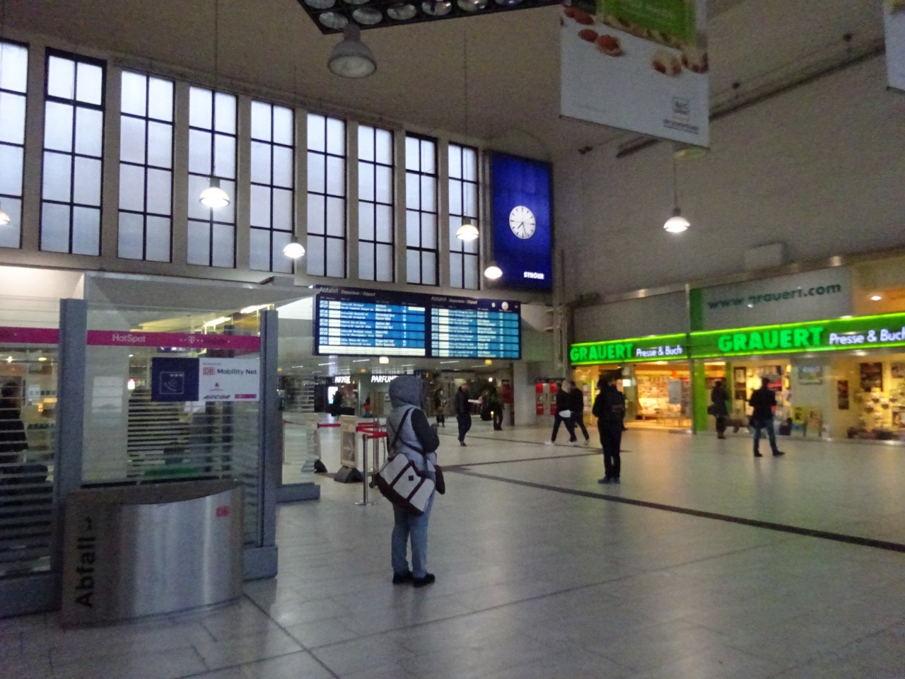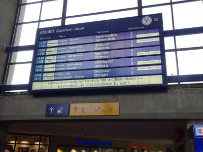 フランクフルトから1時間ちょっと。古都ハイデルベルクの玄関駅です。ICが停車する駅ですが、大都市の中央駅と比べると、ホーム数も少なく、お店の数も少ない感じです。出口を出て直ぐのところに、ツーリストインフォメーションがありました。