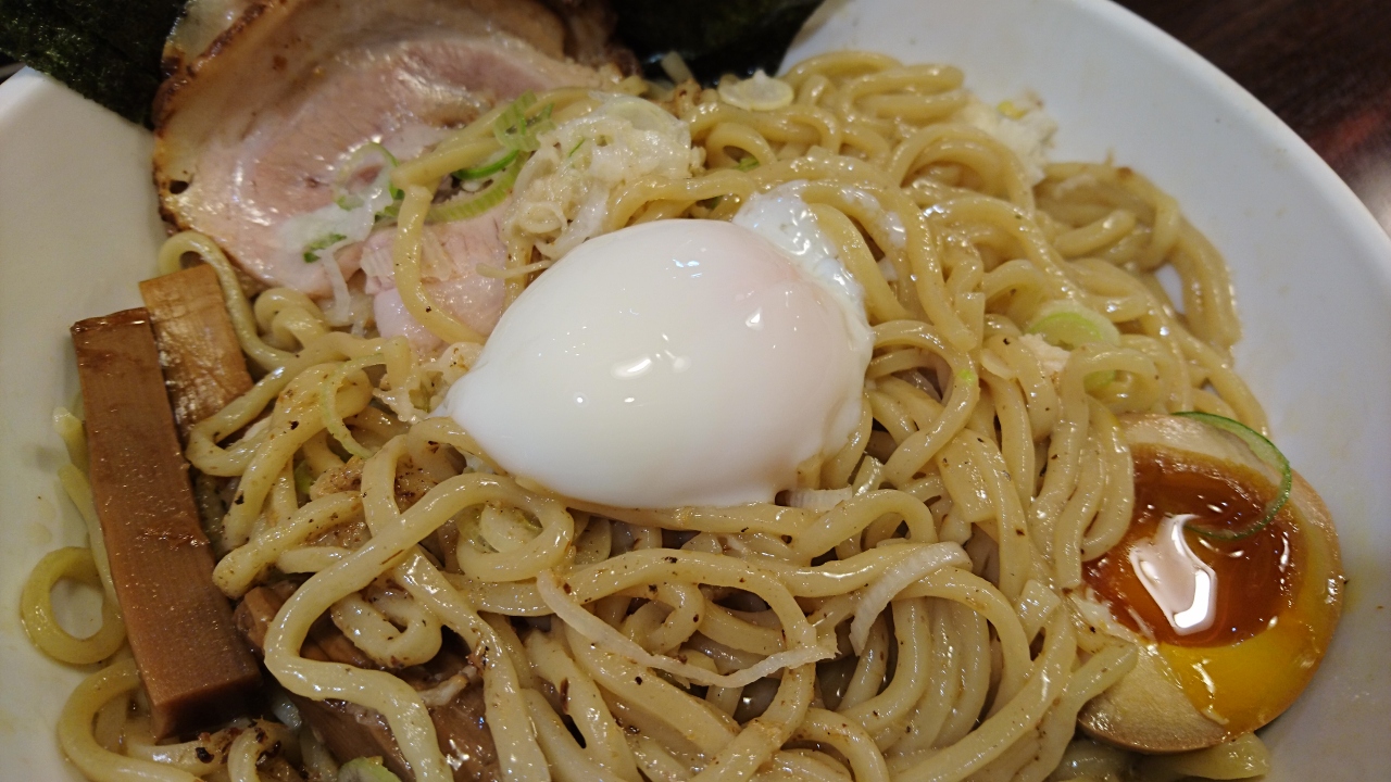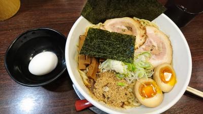 油そばを頼みましたが、卵が別についてきました。よく読むと温玉のようです。これを割って混ぜ混ぜして食べるようです。最後は、スープ割を注文して、満腹です!- 旅行時期