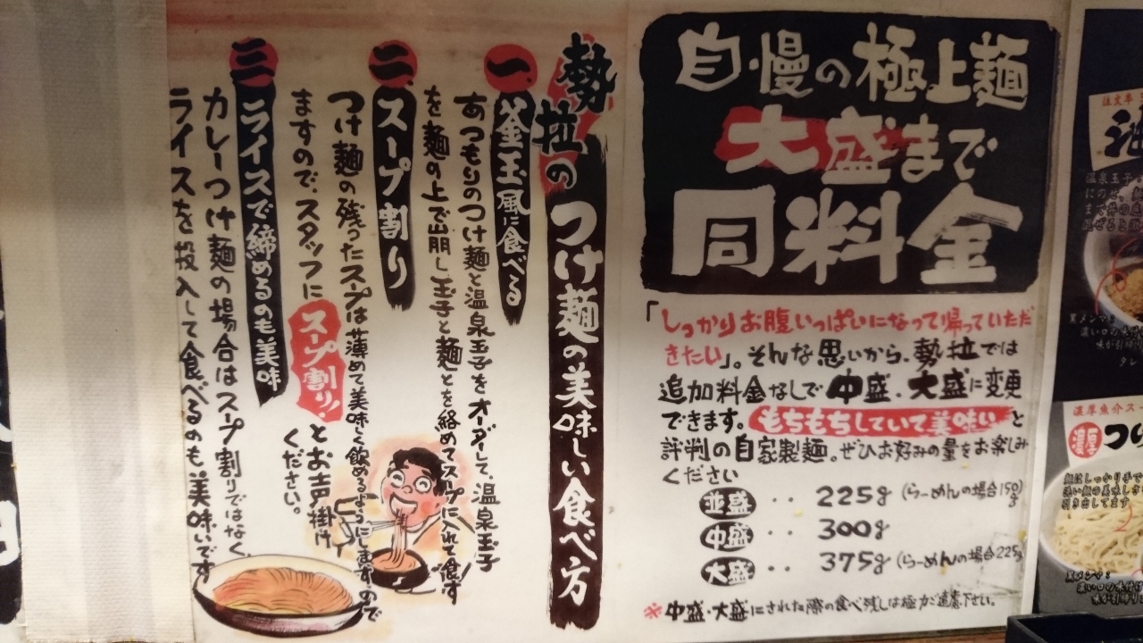 麺は並・中・大から選べますが、大盛でも料金は変わりませんが、特盛は別料金でした。また、沢山食べられない人向けに、半玉にするとトッピングが選べるシステムでした。