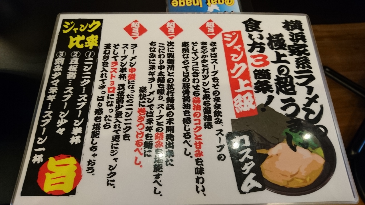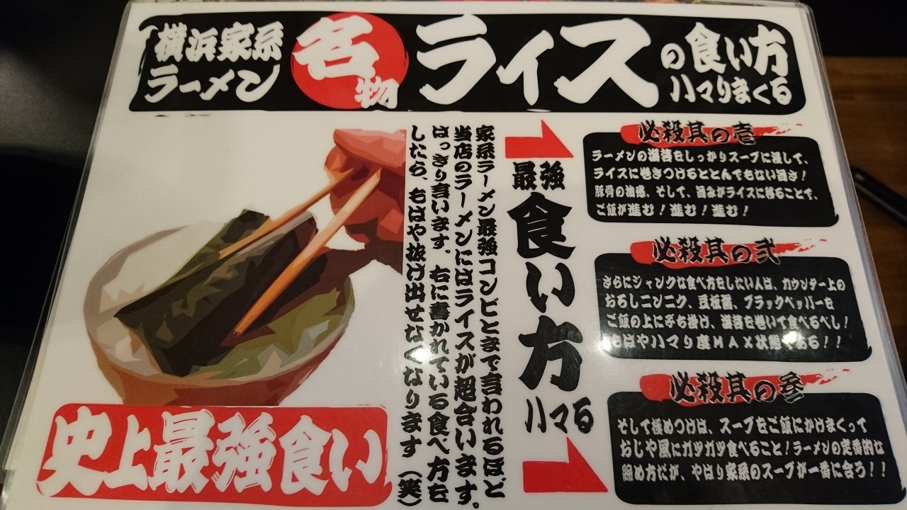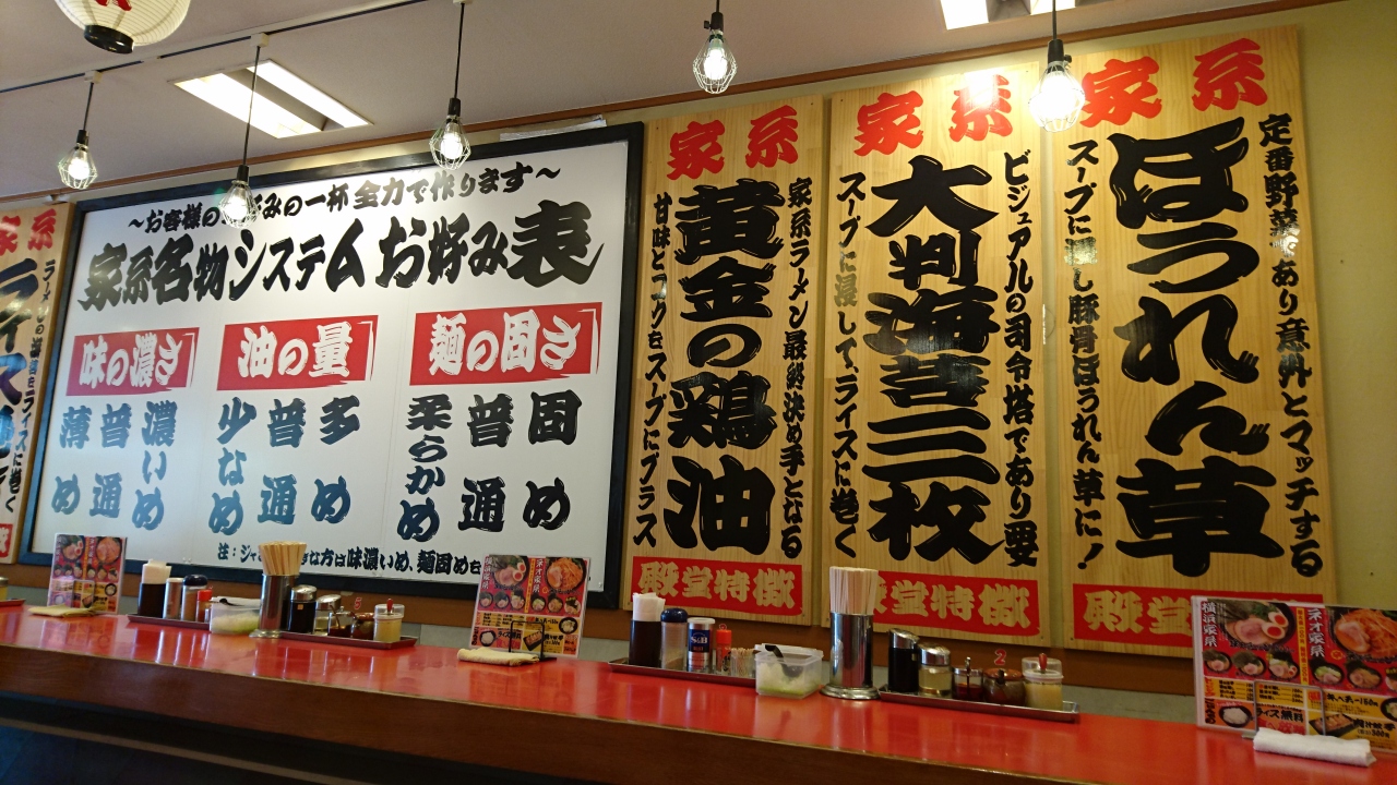 家系らしく、麺の硬さやスープの濃さなどを選べます。私個人の好みとしては、麺を茹でる際、寸胴のお湯に自由に泳がせて作るラーメンの方が、粉っぽさを感じないと思うのです。が、ここは一人前ずつ、個別の網内で茹でるタイプのためか、最初の一口目が粉っぽく感じました。