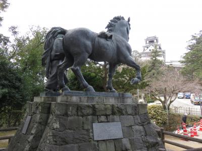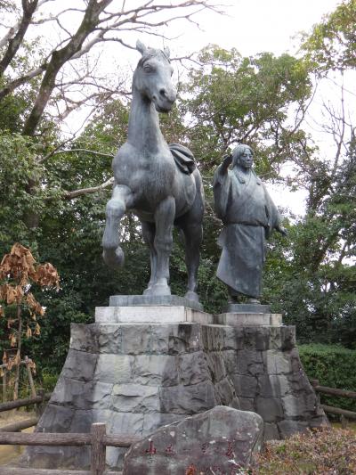 高知城を築城した山内一豊の妻(千代)の像は、高知城の三の丸に行く階段を上がったところにあります。千代の像なのか? 馬の像なのか? と思うほど馬が目立ってますが、一豊公の出世のきかっけとなったこの名馬は、千代さんがへそくりで買ったと言う有名な逸話から来ているみたいです。