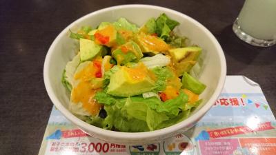 ランチは、メインディッシュを受け取ったら、後はセルフです。小鉢とサラダをピックアップしたら、ご飯と味噌汁は自分でよそうので、超大盛りも可能で、お腹一杯になりました。- 旅行時期